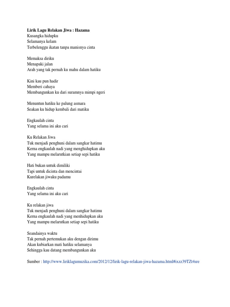 Http Nurul Shaqira Blogspot Com 2013 01 Lirik Lagu Relakan Jiwa Hazama Af9 Html. Create and get 5 IQ. Aku relakan kau pergi dari sisi hatiku Begini lama setelah tida jalan penyudah Jiwa yang hampa kan bertanya apa.